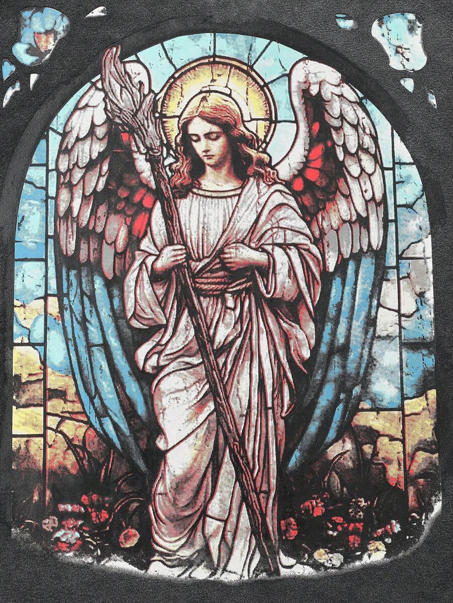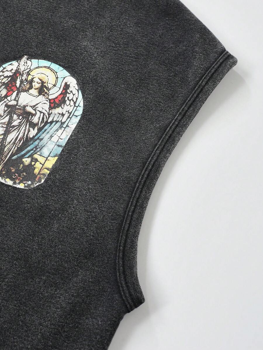 Street Life Camiseta de tirantes de ajuste corto con estampado de ángel lavada para hombre
