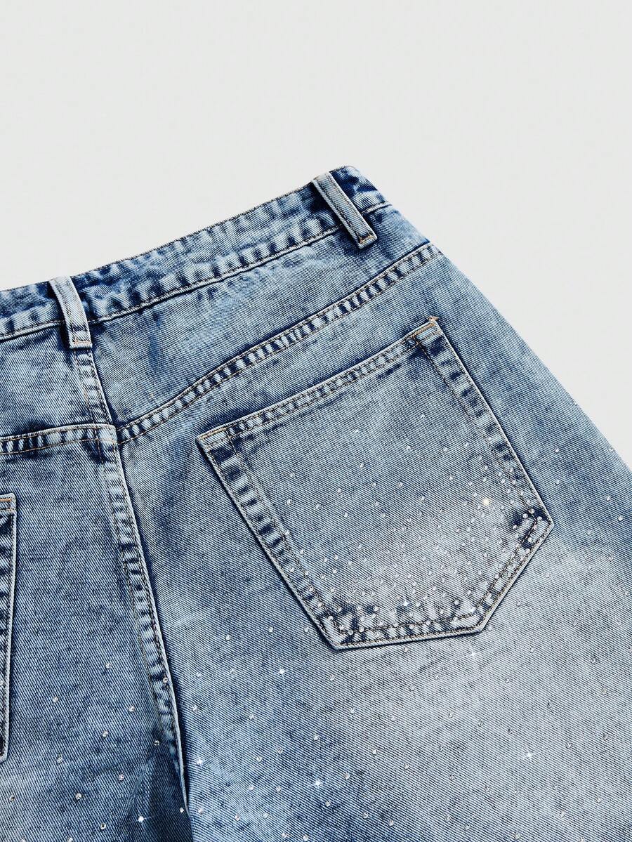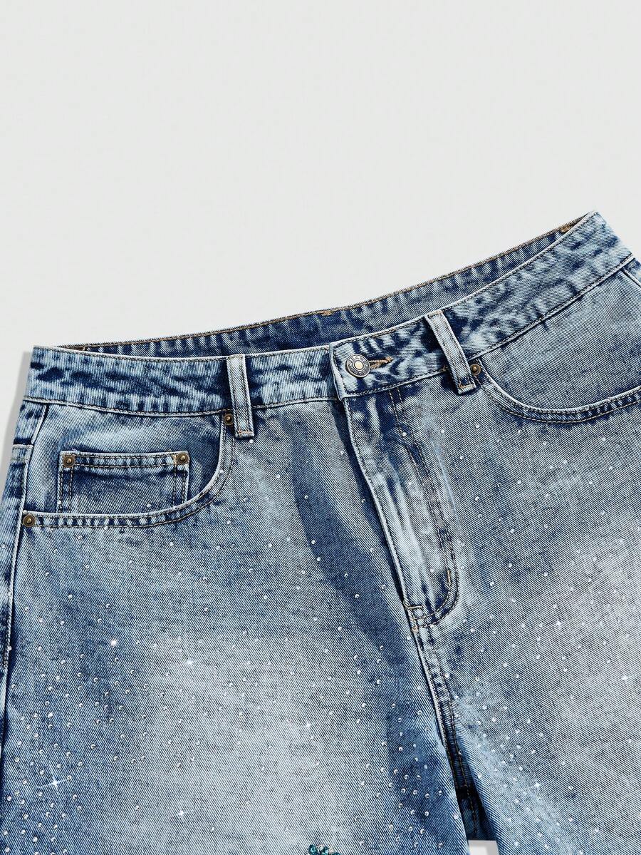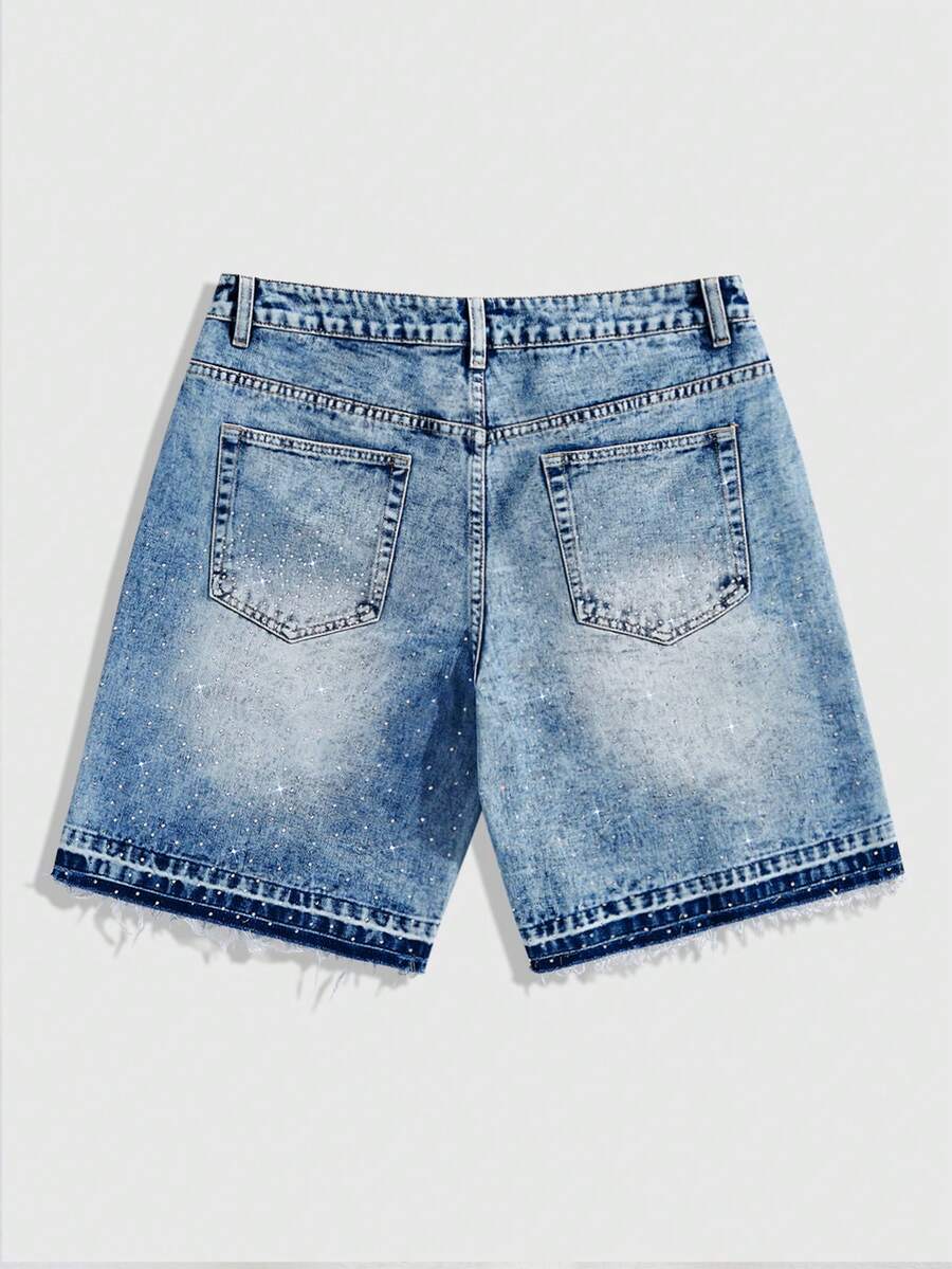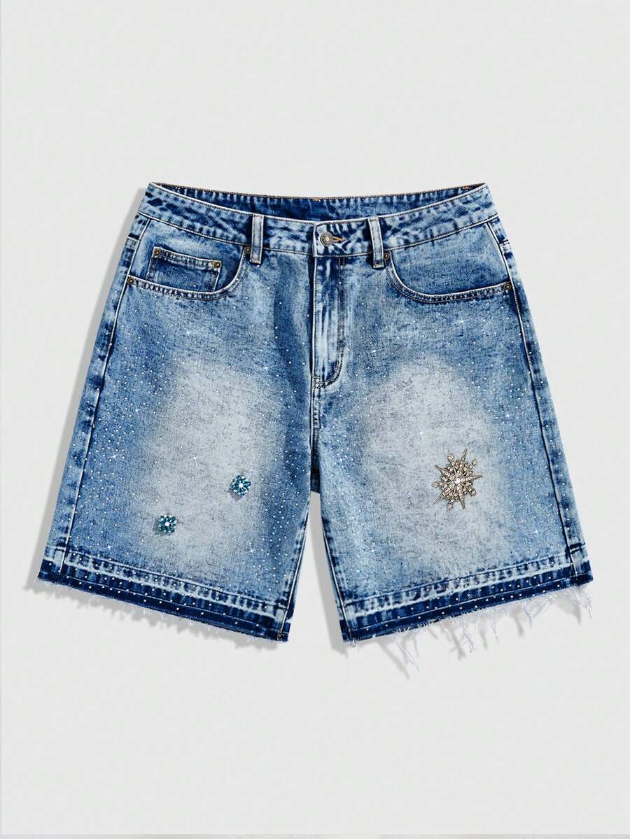 Street Life Pantalones cortos vaqueros de corte holgado con bolsillos de pedrería para hombre
