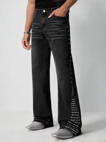 Street Life Jeans casuales sueltos de unicolor con decoración de remaches para hombres