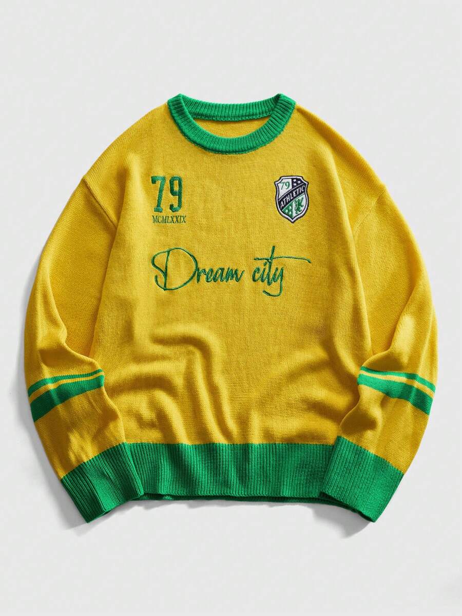Street Life Suéter de punto de cuello redondo de fútbol para hombres, ropa deportiva urbana