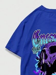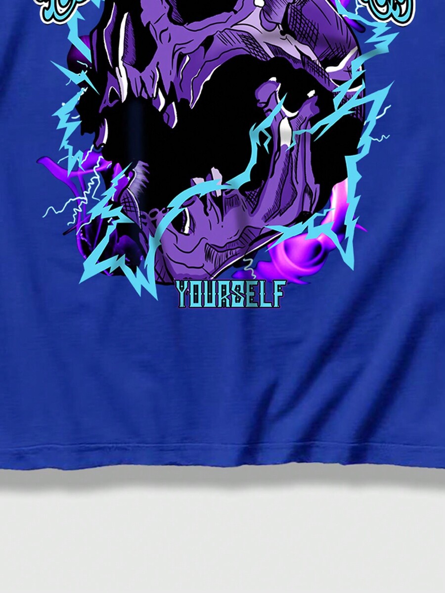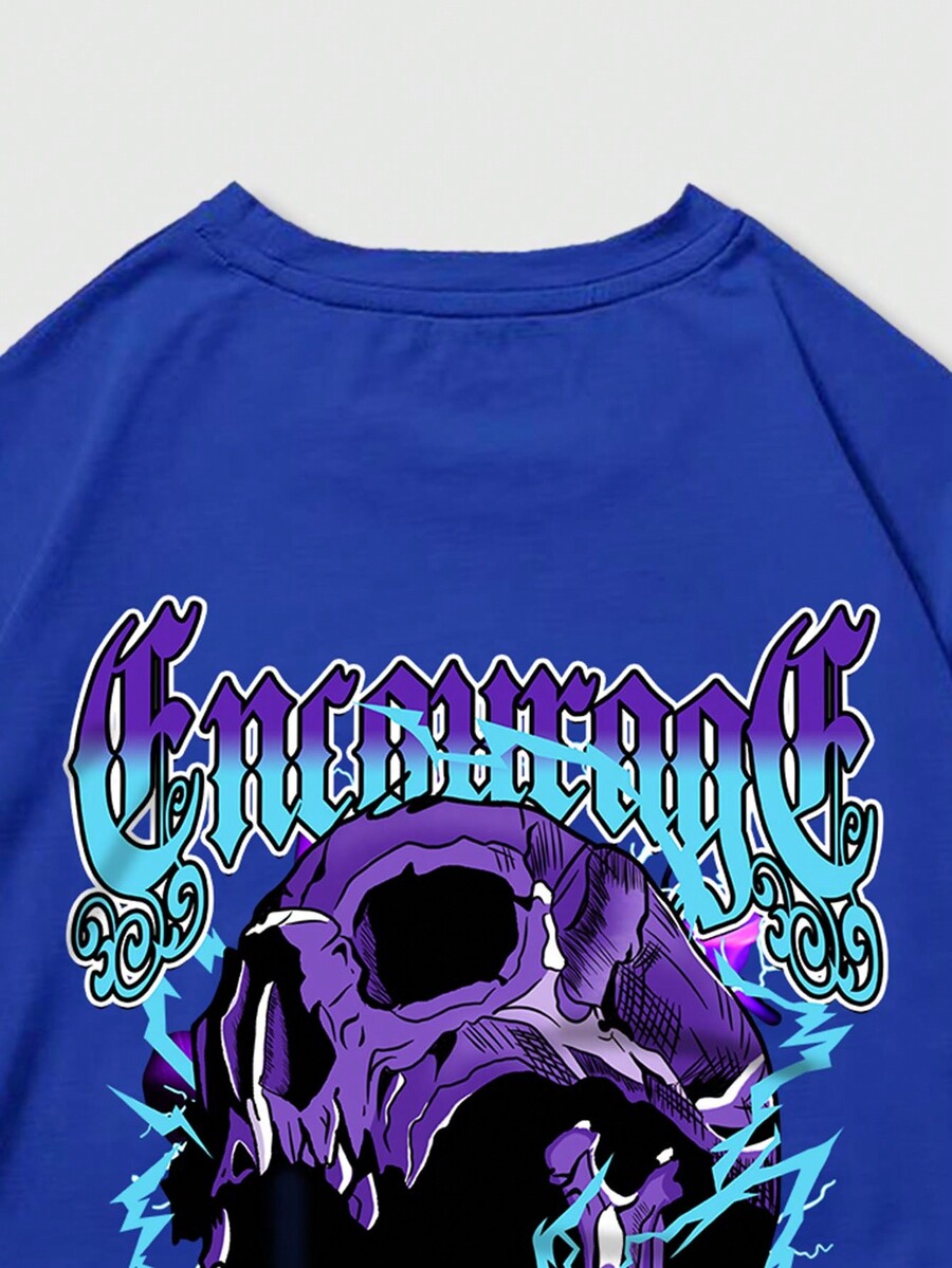 Street Life Camiseta Casual De Manga Corta Para Hombre Con Calaveras Y Letras Impresas