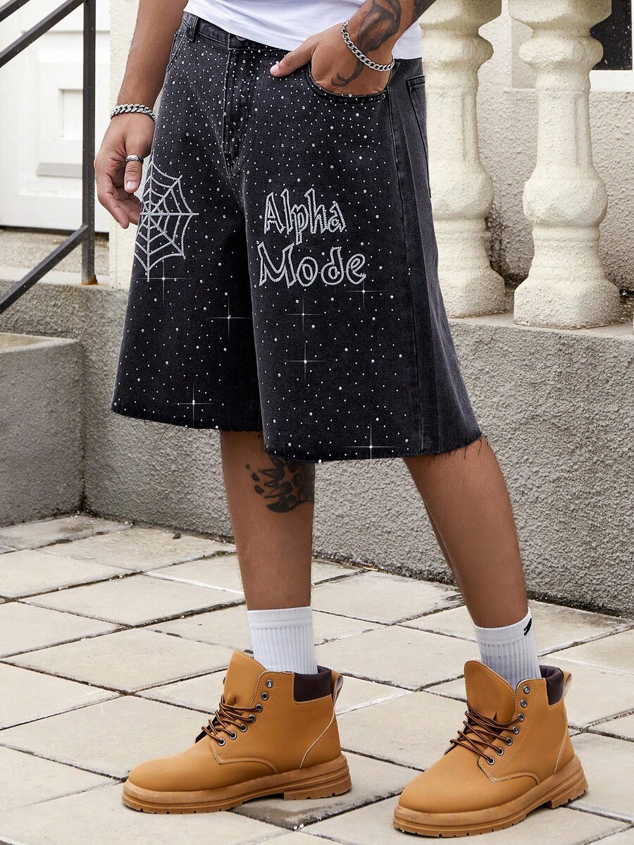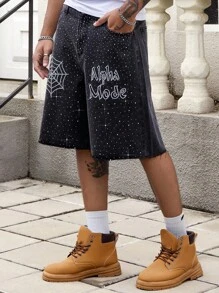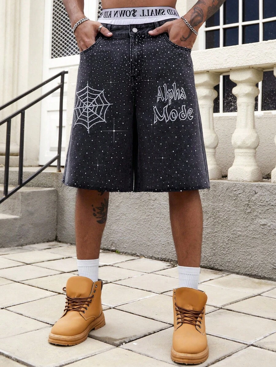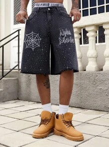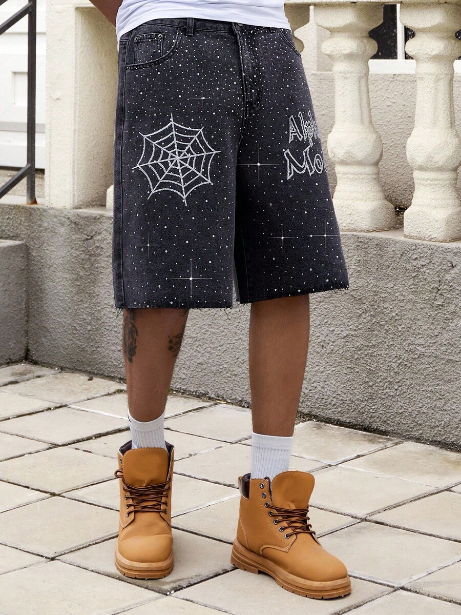 Street Life Shorts vaqueros anchos y holgados de hombre con bolsillo y gráfico de araña