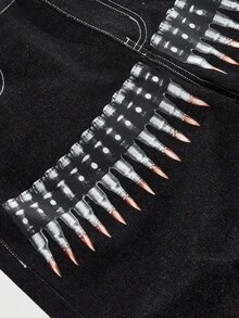 Street Life Jeans casuales sueltos con bolsillos estampados y pierna recta para hombres