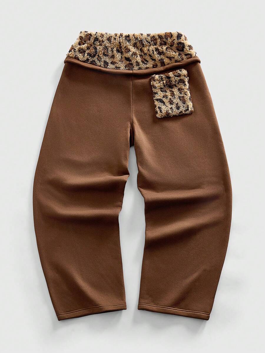 Street Life Pantalones de chándal de moda callejera casual con parches y corte curvo para hombres