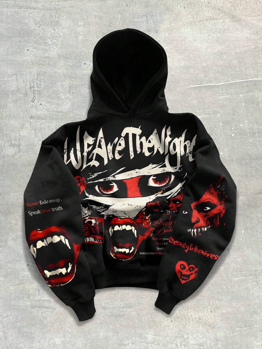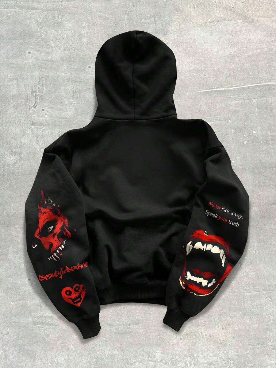 Street Life Sudadera con capucha de manga larga con estampado de moda callejera para hombres