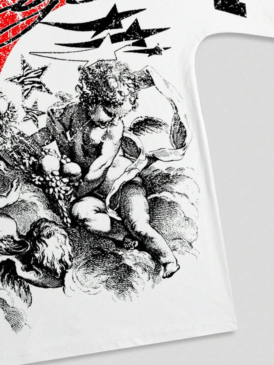 Street Life Camiseta de manga corta con estampado y manga de murciélago, estilo callejero para hombre, uso casual diario, Halloween