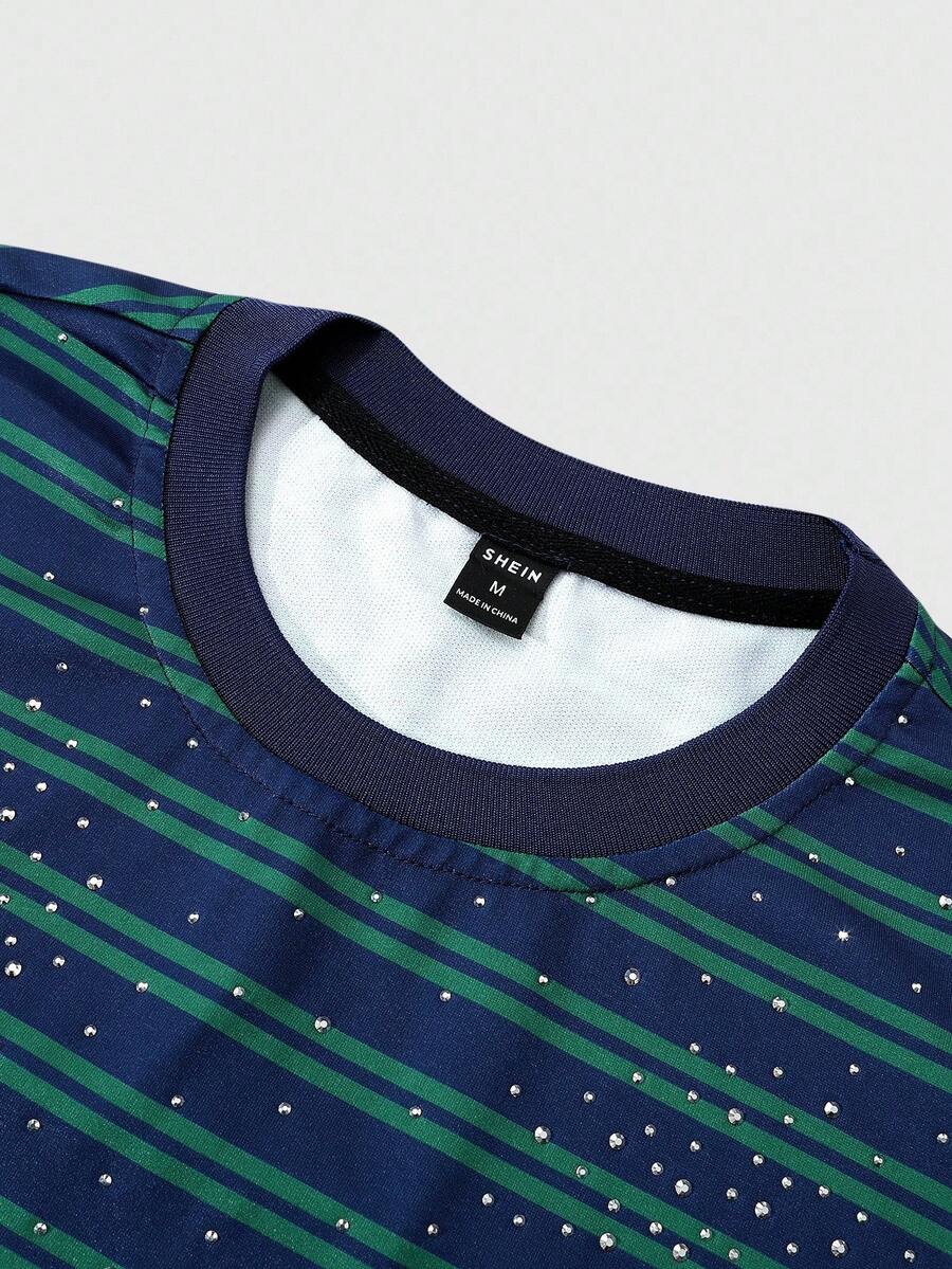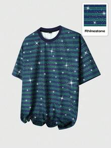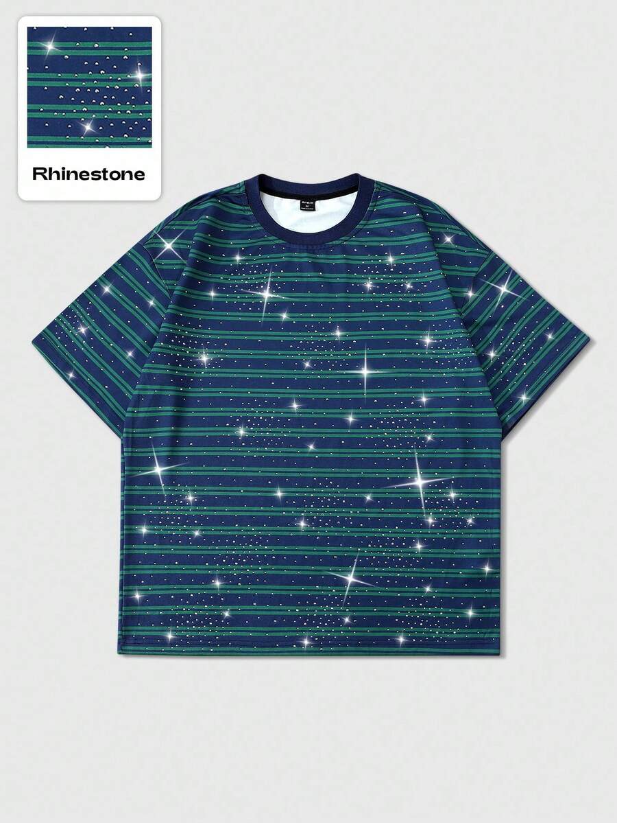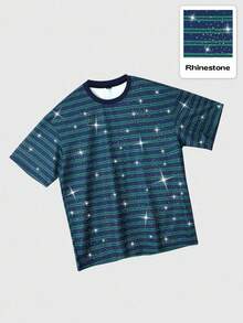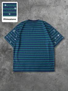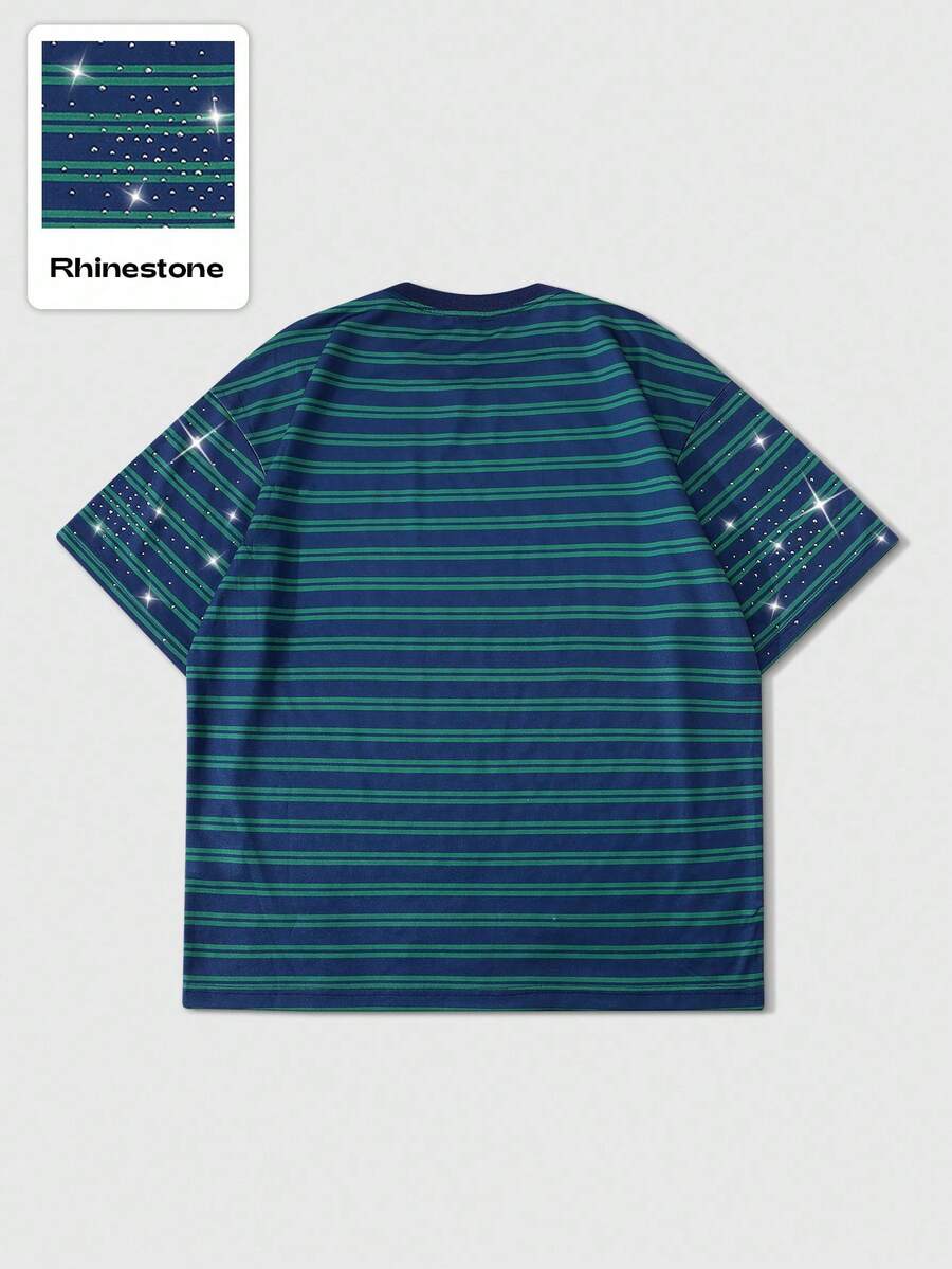 Street Life Camiseta de manga corta para hombre con rayas y adornos de rhinestones, adecuada para uso diario, primavera/verano
