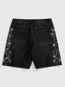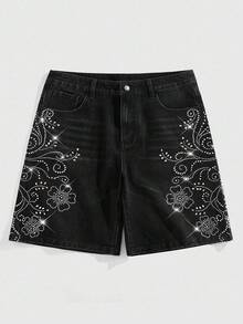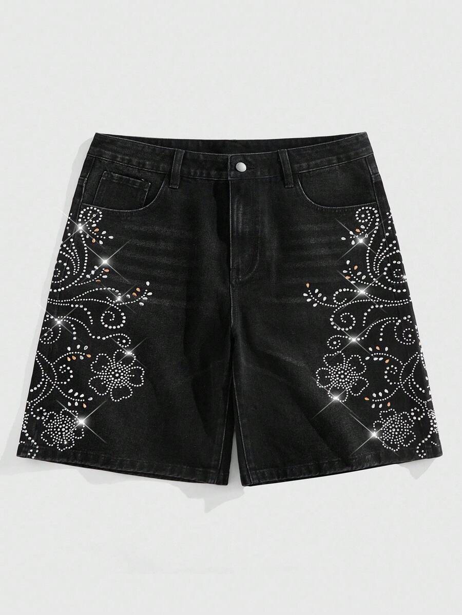 Street Life Pantalones cortos capri de mezclilla con adornos de rhinestone para hombres en verano