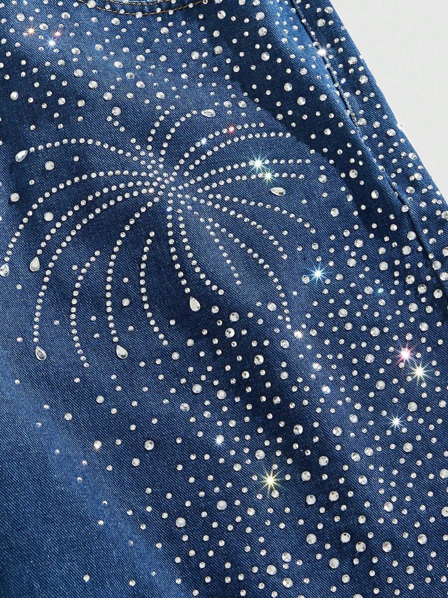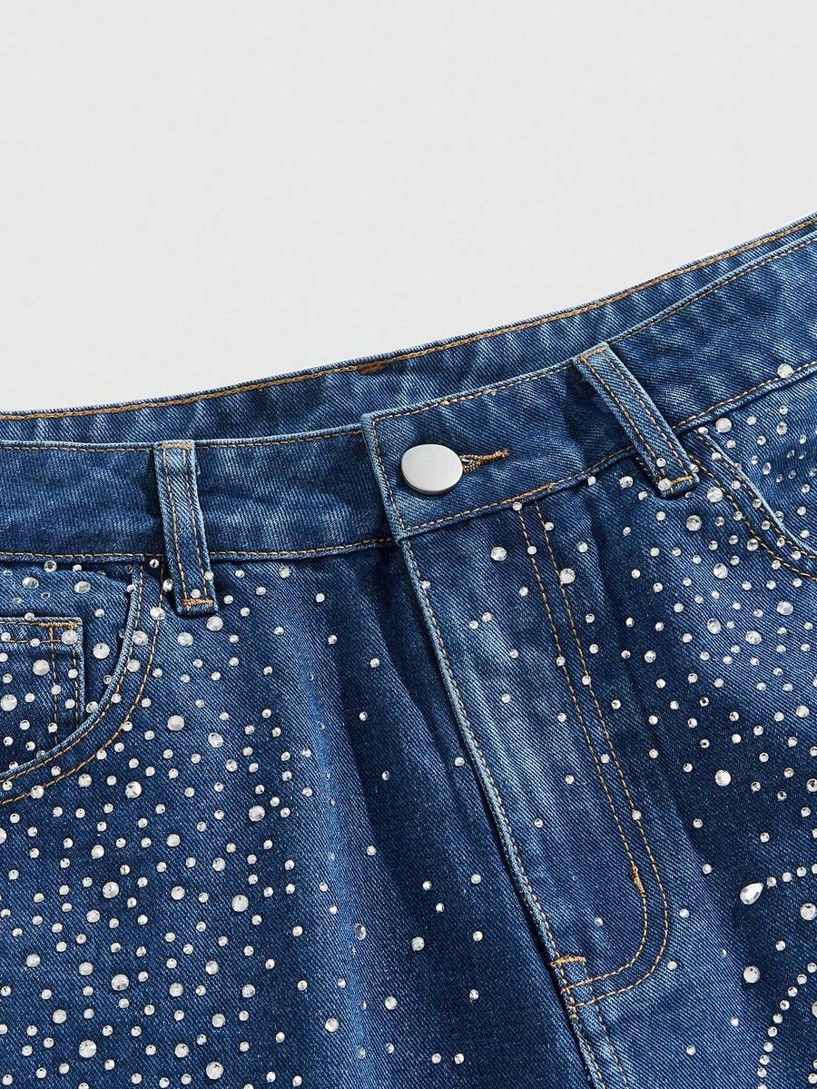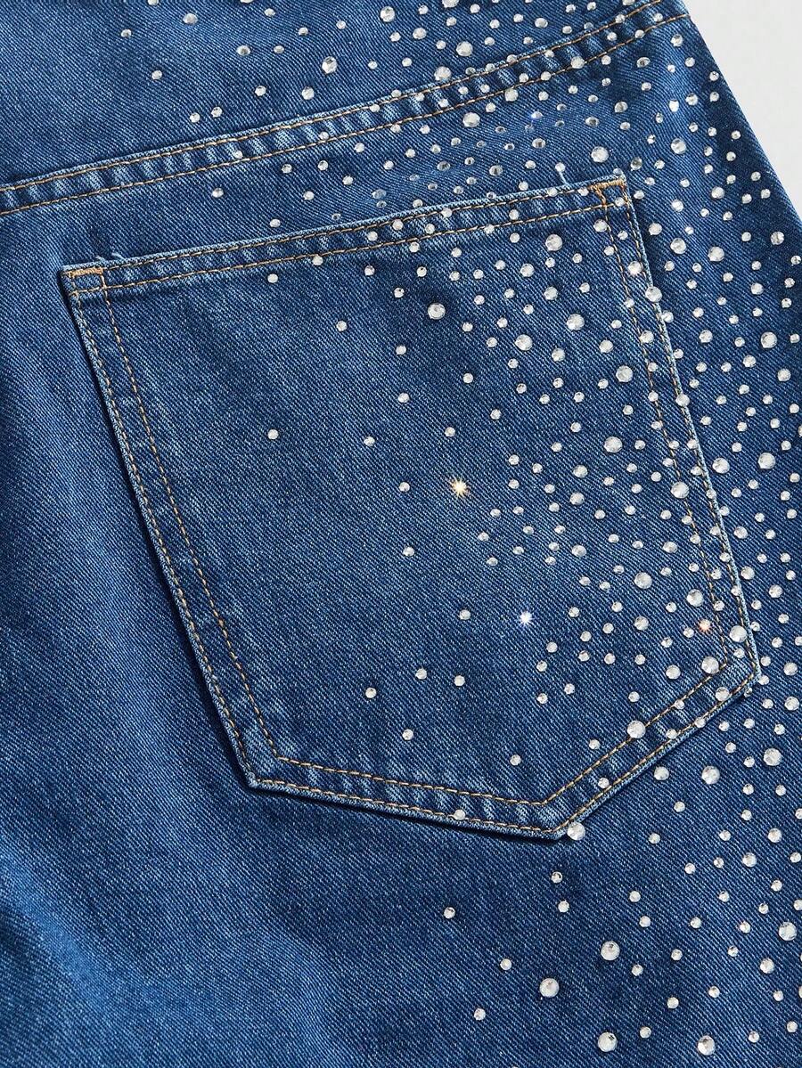 Street Life Shorts vaqueros de verano para hombres con bolsillos en diagonal y desgastados con aplicaciones de rhinestones