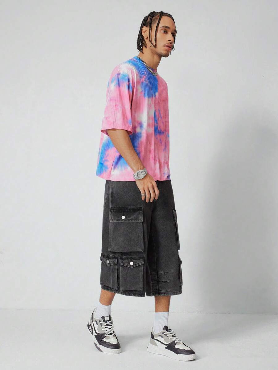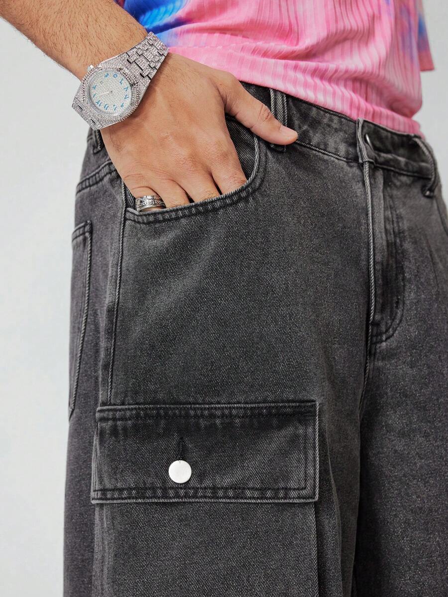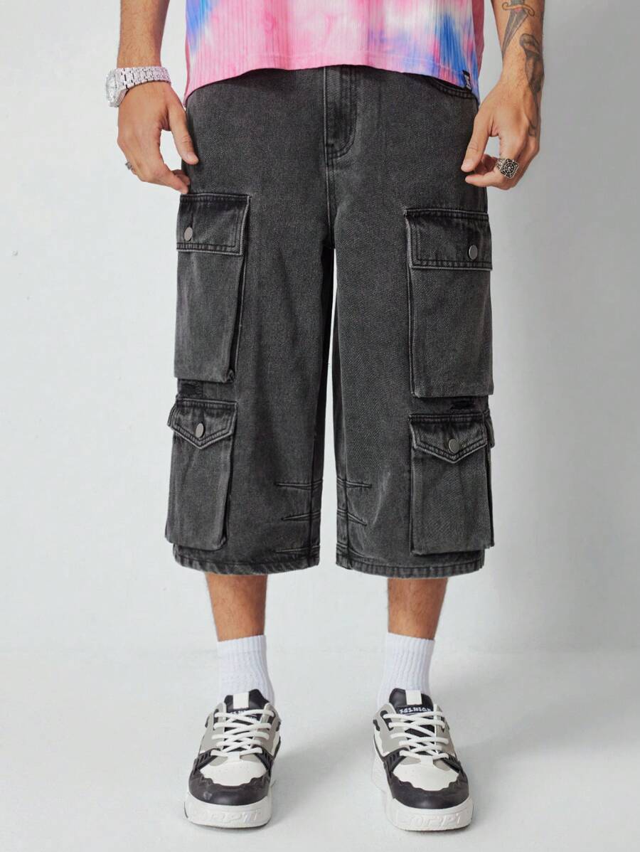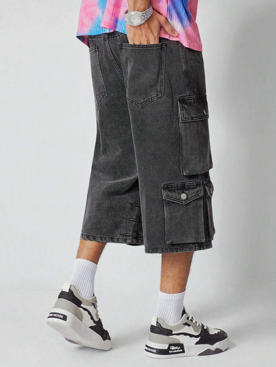 Street Life Pantalones vaqueros cargo holgados de pierna ancha y corte capri para hombre