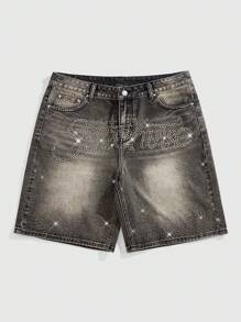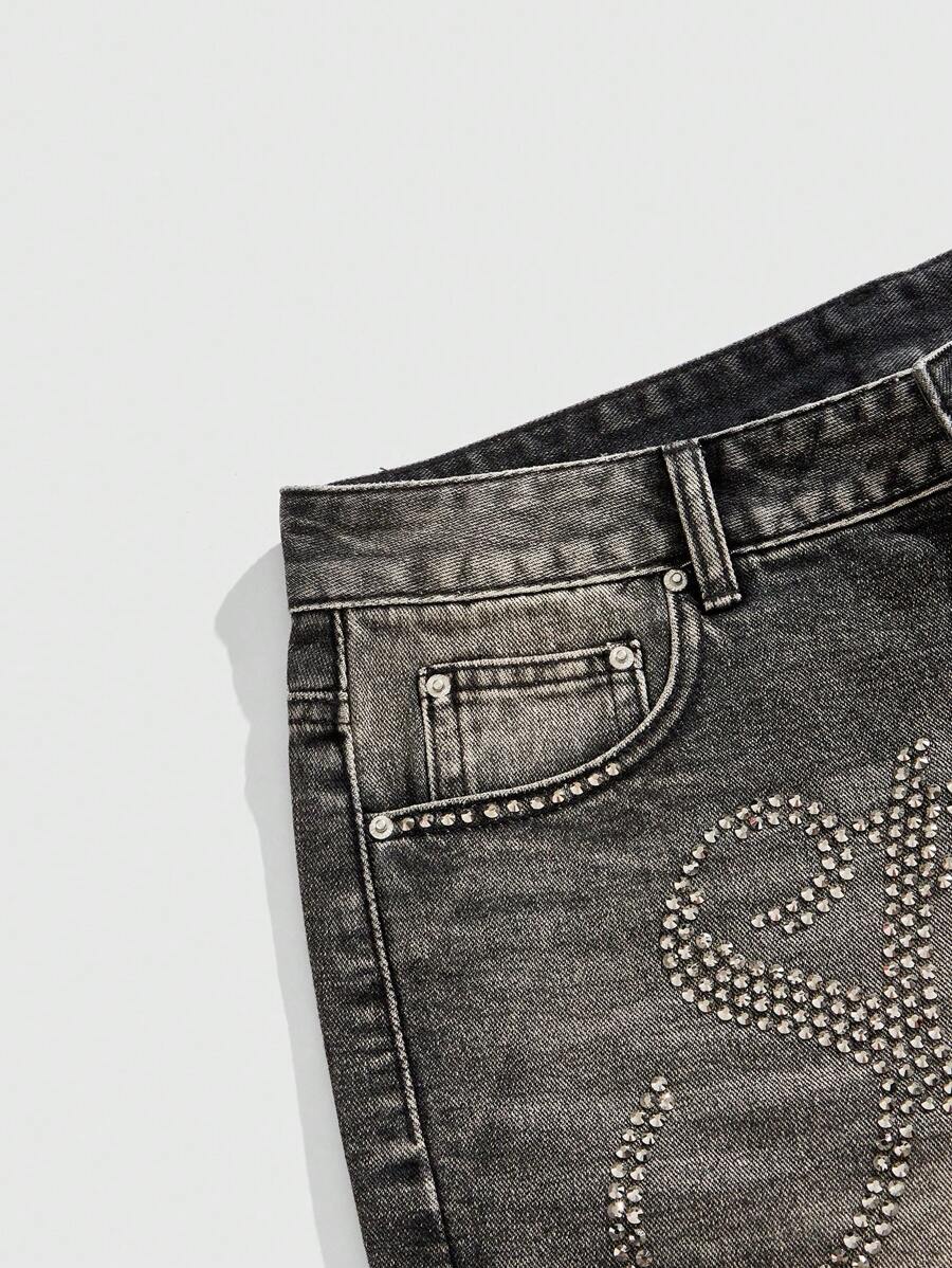 Street Life Shorts vaqueros casuales con bolsillos y adornos de strass en degradado