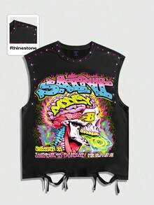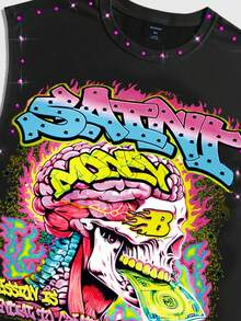 Street Life Camiseta de tirantes con diseño de calavera de strass, ropa de verano para hombres