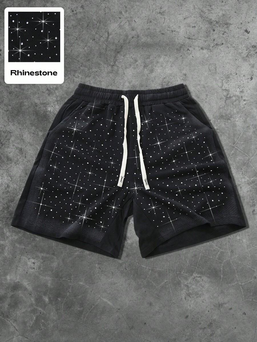 Street Life Pantalones cortos casuales con diseño de Mustang pintado con aerosol de rhinestones, unisex