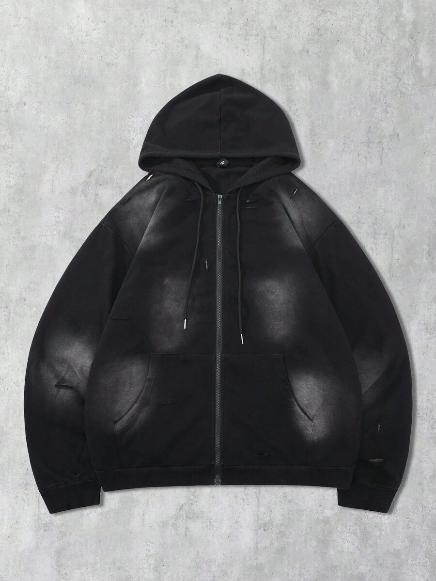 Street Life Sudadera con capucha y cremallera con gráfico desgastado de estilo streetwear unisex, otoño