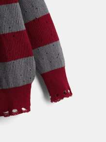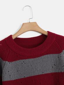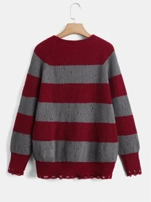 Suéter roto con patrón de rayas de manga raglán