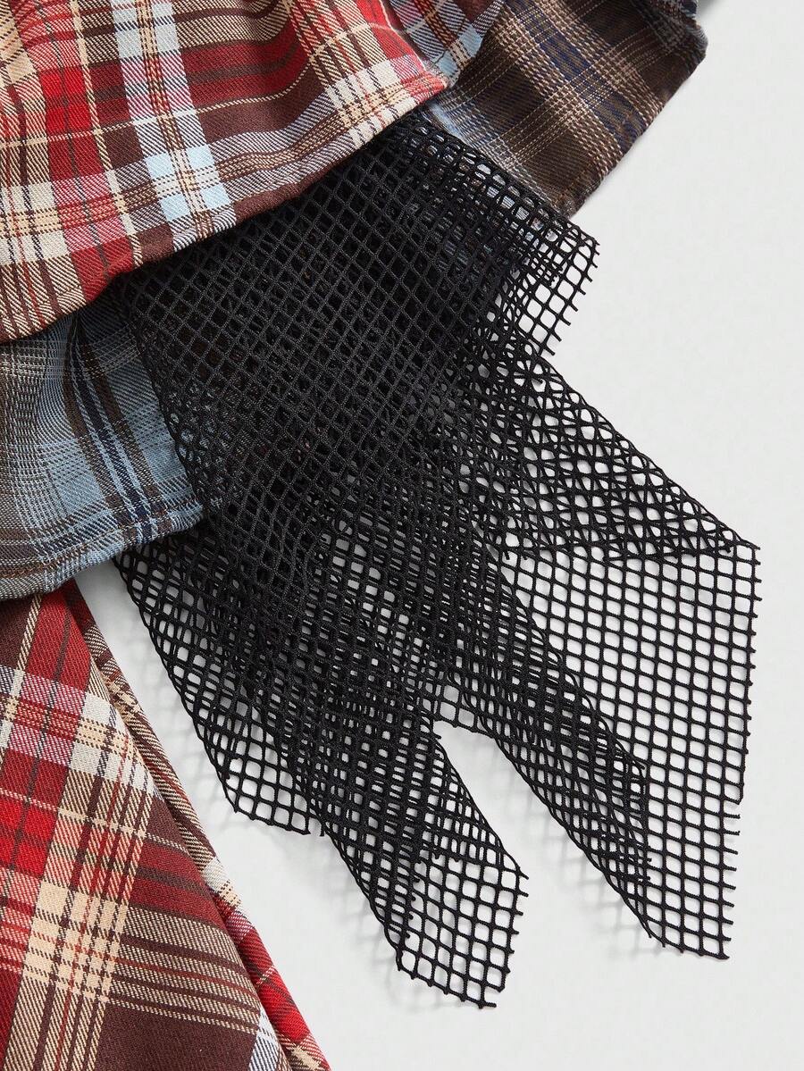 ROMWE Avant Falda mini asimétrica de mezclilla de cintura baja con encaje, malla, parches, rayas, remaches y cristales, en estilo vintage Y2K, para conciertos, festivales, playa, graduación y verano