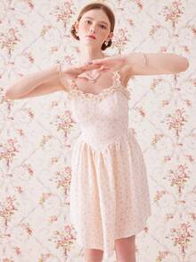Sweetness Vestido floral ribete fruncido