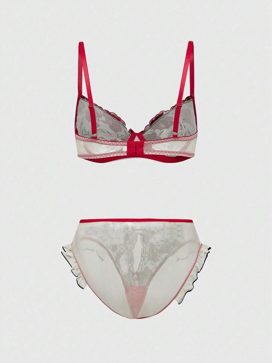 Sweetness Conjunto de lencería sexy de mujer con bordado floral hecho a mano y con aros