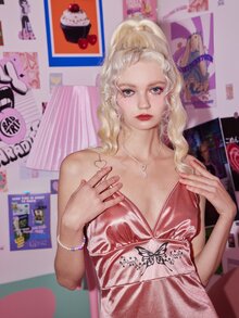 Sweetness Vestido de tirantes de satén con estampado de mariposa