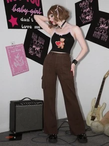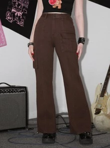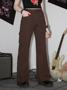 Sweetness Jeans cargo unicolor con bolsillo con solapa