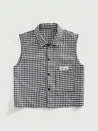 Street Life Chaleco casual con bolsillo y botones delanteros a cuadros para adolescentes, verano