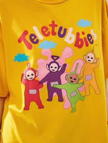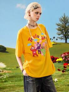 Teletubbies X ROMWE Camiseta holgada de mujer amarilla con patrón de nubes de globos lindos