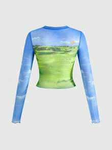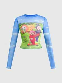 Teletubbies X ROMWE Top de manga larga con gráfico de dibujos animados lindos estilo Y2K para mujeres