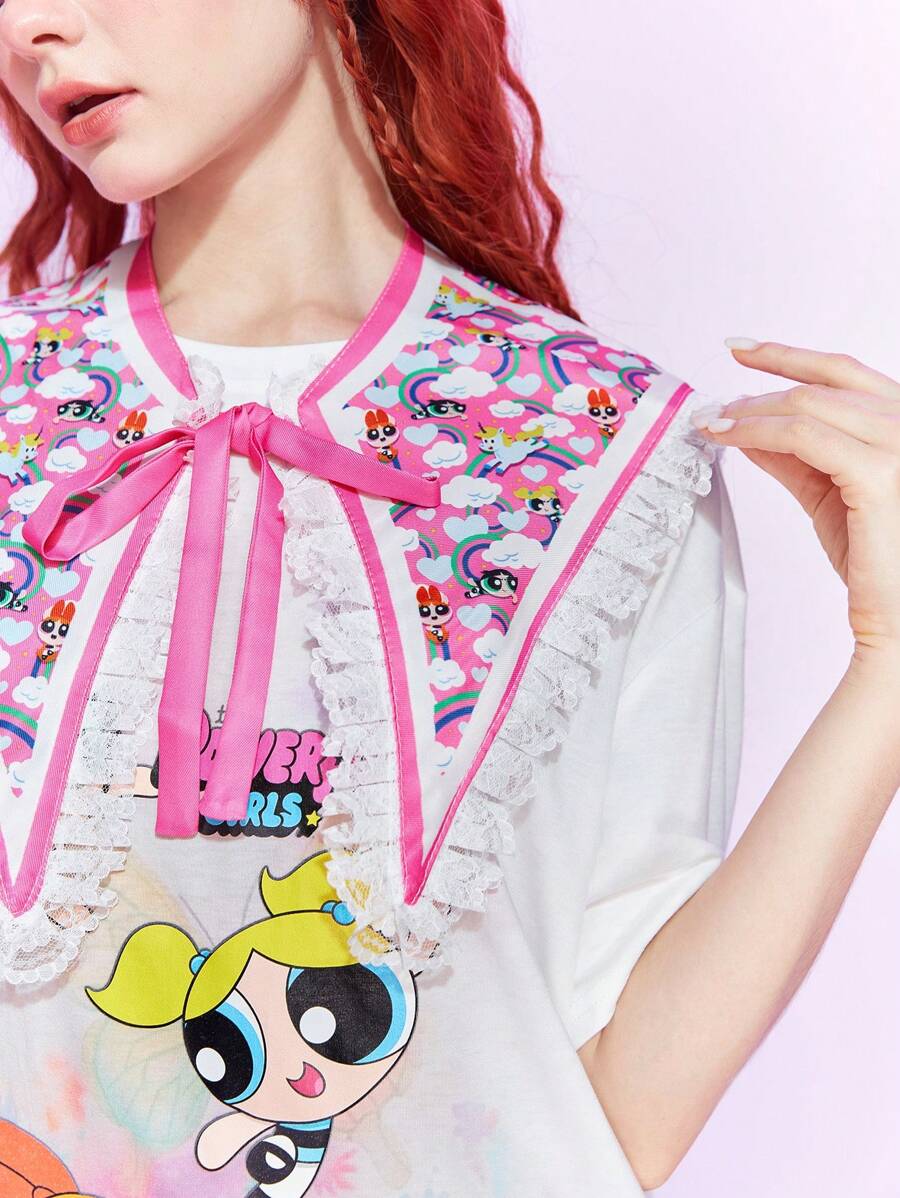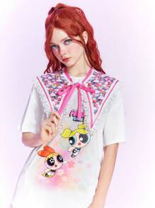 The Powerpuff Girls | ROMWE Mujer 1 pieza Cuello desmontable con estampado de dibujos animados bajo asimétrico