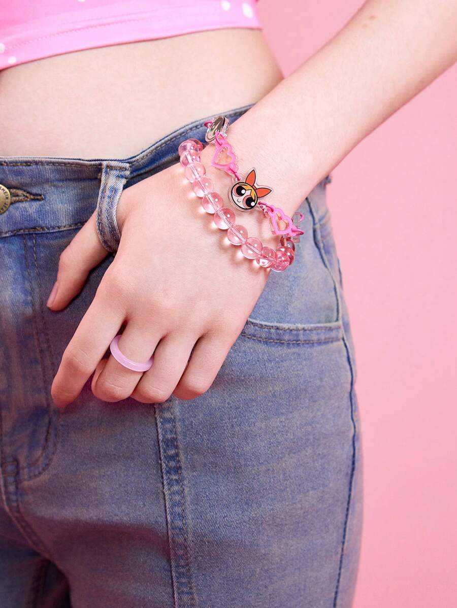 The Powerpuff Girls | ROMWE Pulsera de vidrio con corazón de acrílico de dibujos animados
