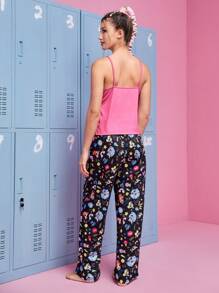 The Powerpuff Girls | ROMWE con estampado de dibujos animados Top de tirantes con pantalones Conjunto de pijama