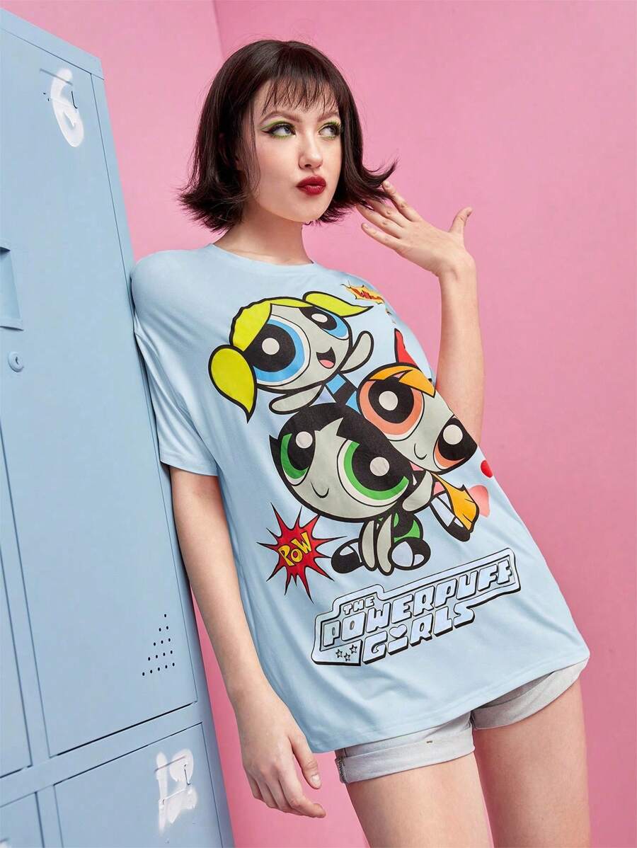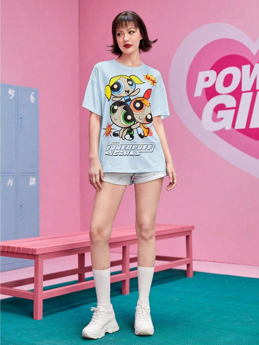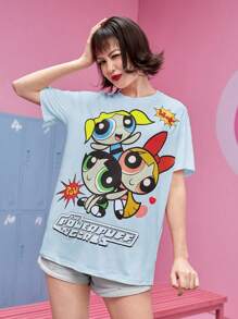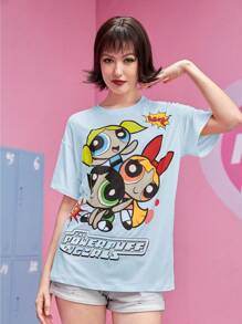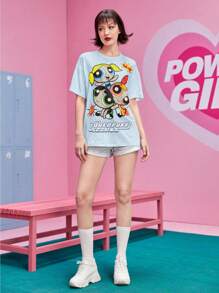 The Powerpuff Girls | ROMWE Camiseta de hombros caídos con estampado de dibujos animados