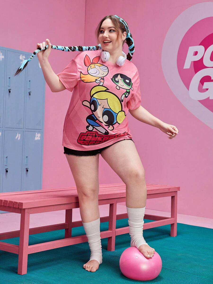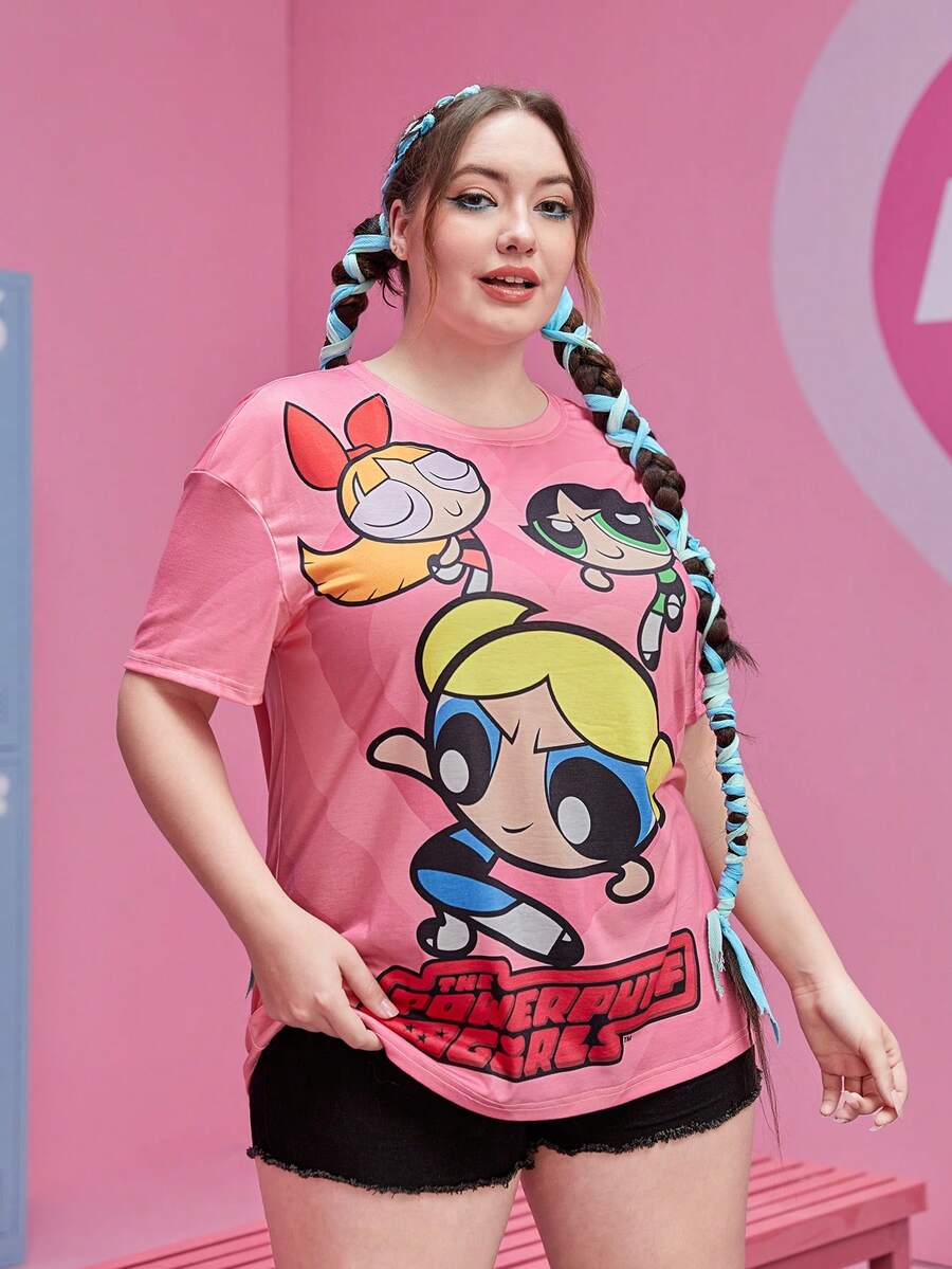 The Powerpuff Girls | ROMWE Camiseta de manga caída con gráfico de dibujos animados para talla grande, ideal para el verano