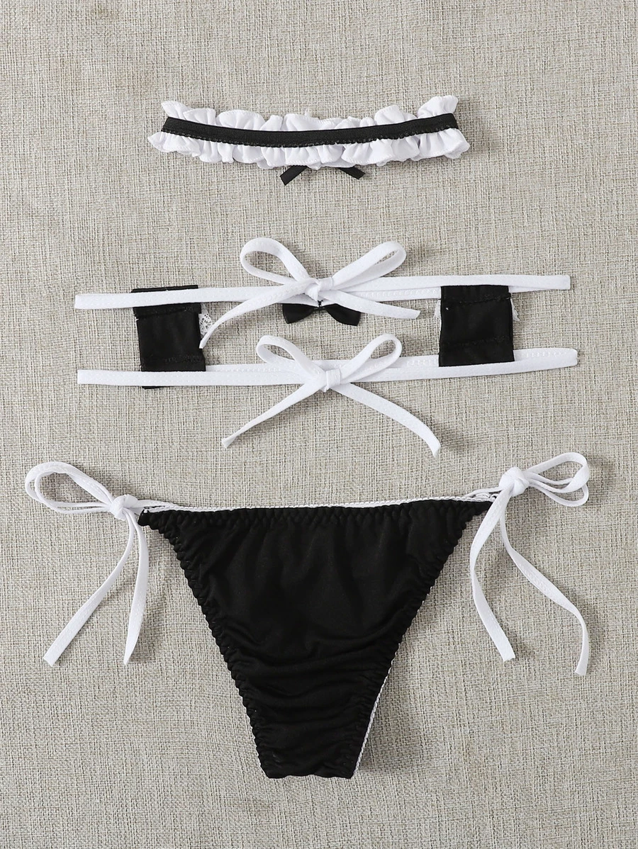 Set sexy mucama de espalda con cordón con anillo de pierna