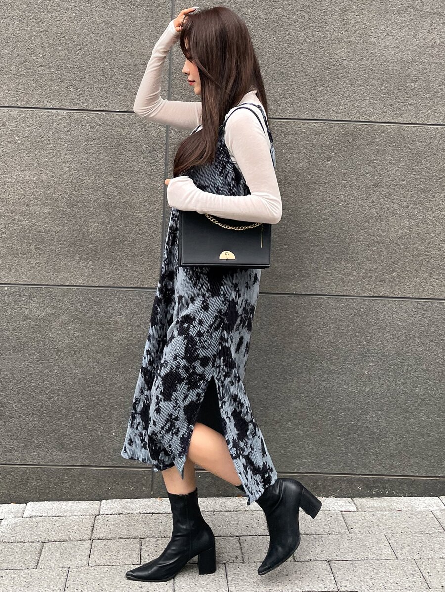 Vestido camisero de terciopelo efecto tie-dye sin camiseta, con volantes