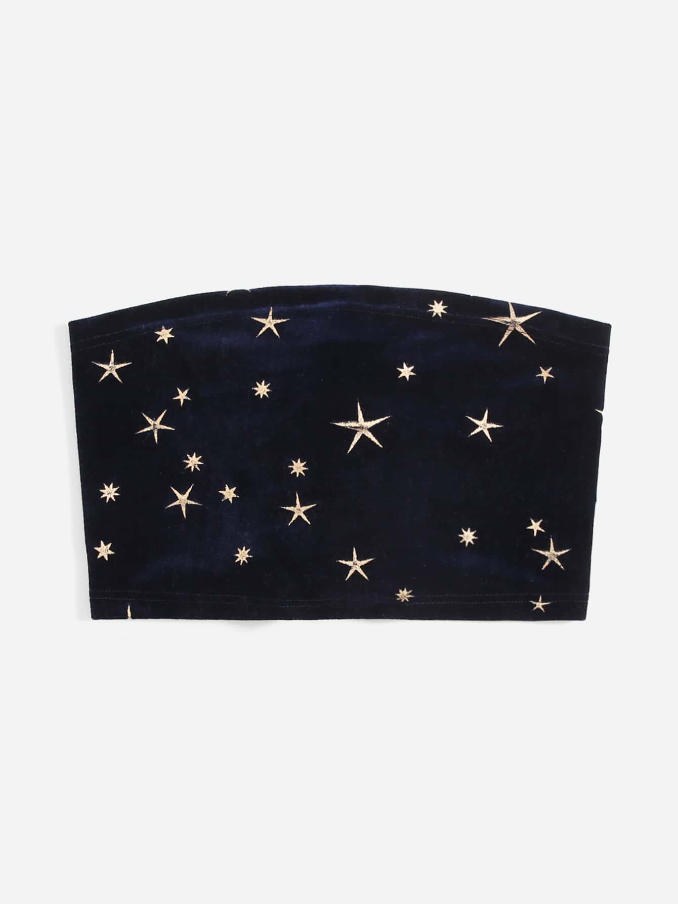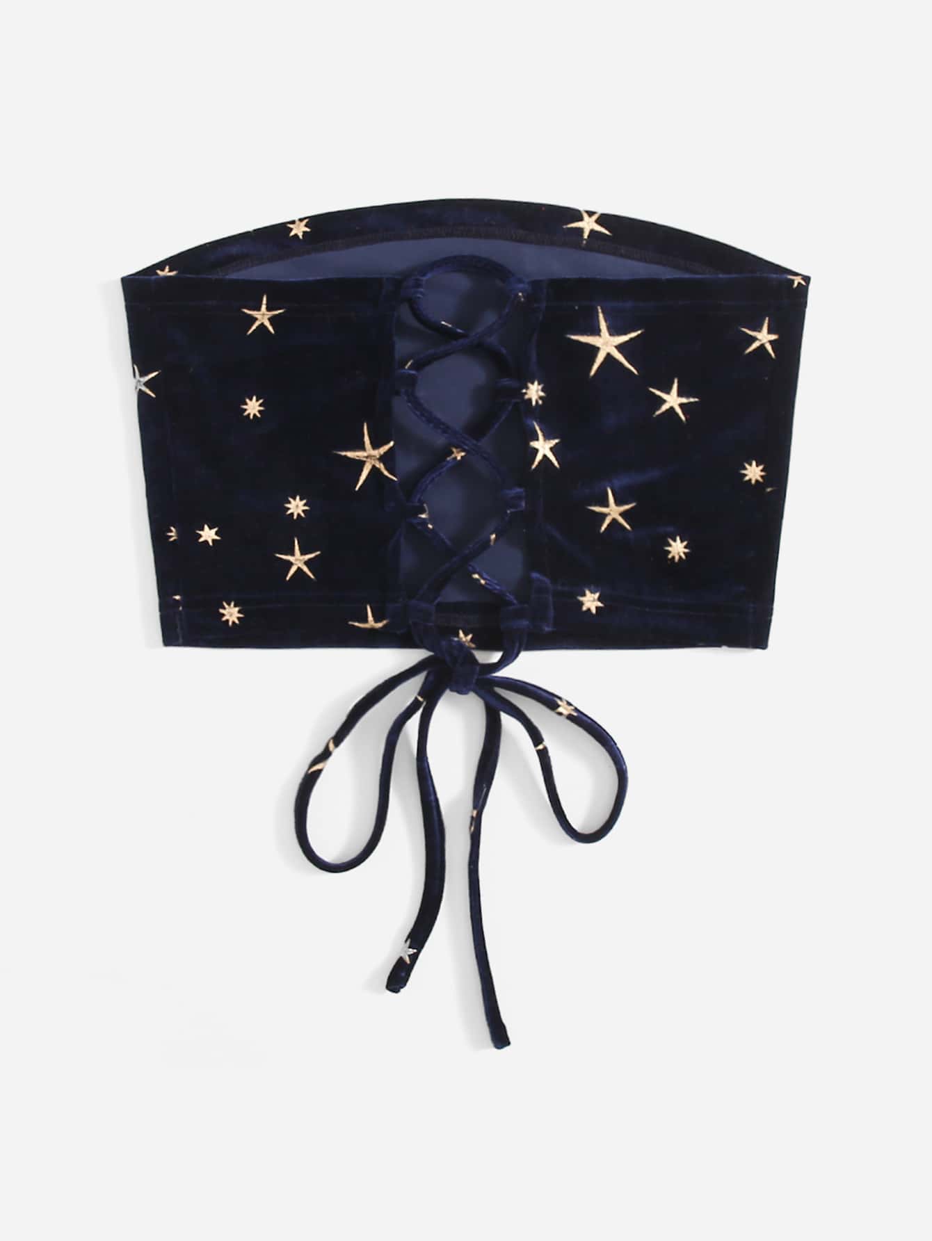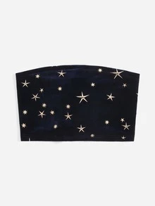 Top bandeau de terciopelo con estrella estampado dorado con cordón