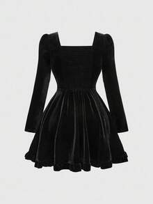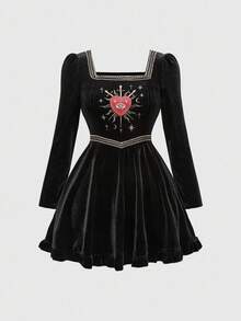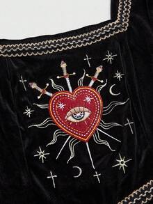Goth Vestido de manga larga de terciopelo con bordado vintage gótico de corazón y ojo oscuro, para Halloween