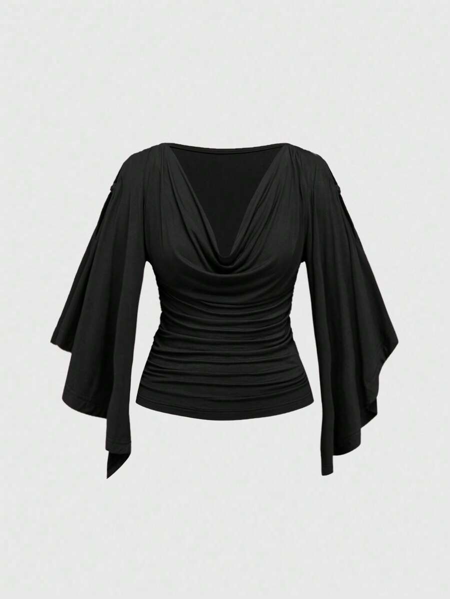 Hippie Camiseta de mujer de talla grande con cuello de barco, cintura ceñida y mangas de murciélago, con decoración de cuentas de madera sueltas y vintage