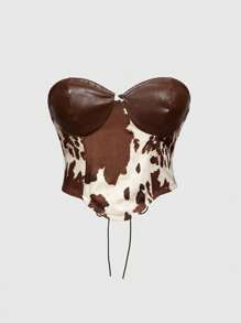 Hippie Blusa de mujer con estampado de vaca y parches en estilo vintage y salvaje del oeste