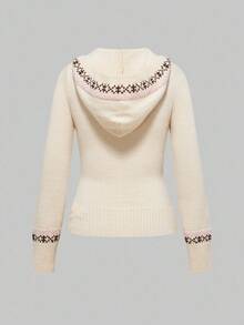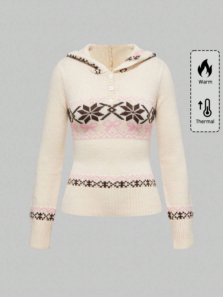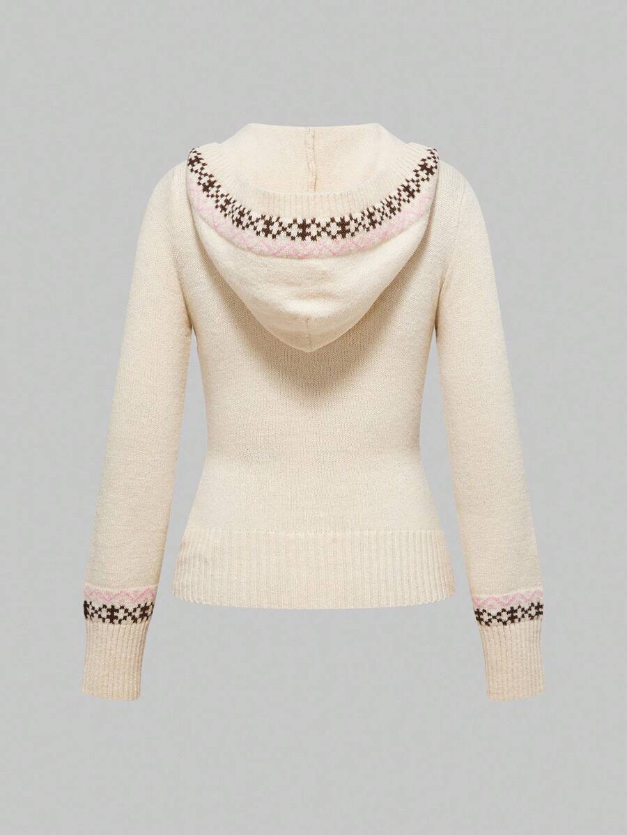 ROMWE Avant Suéter con capucha ajustado con estampado Fair Isle y lazo vintage Y2K para mujer