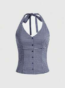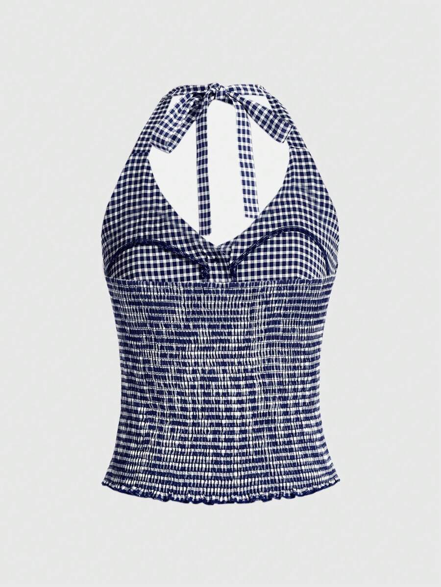 Kawaii Top De Cuadros Con Cuello Halter Para Mujer