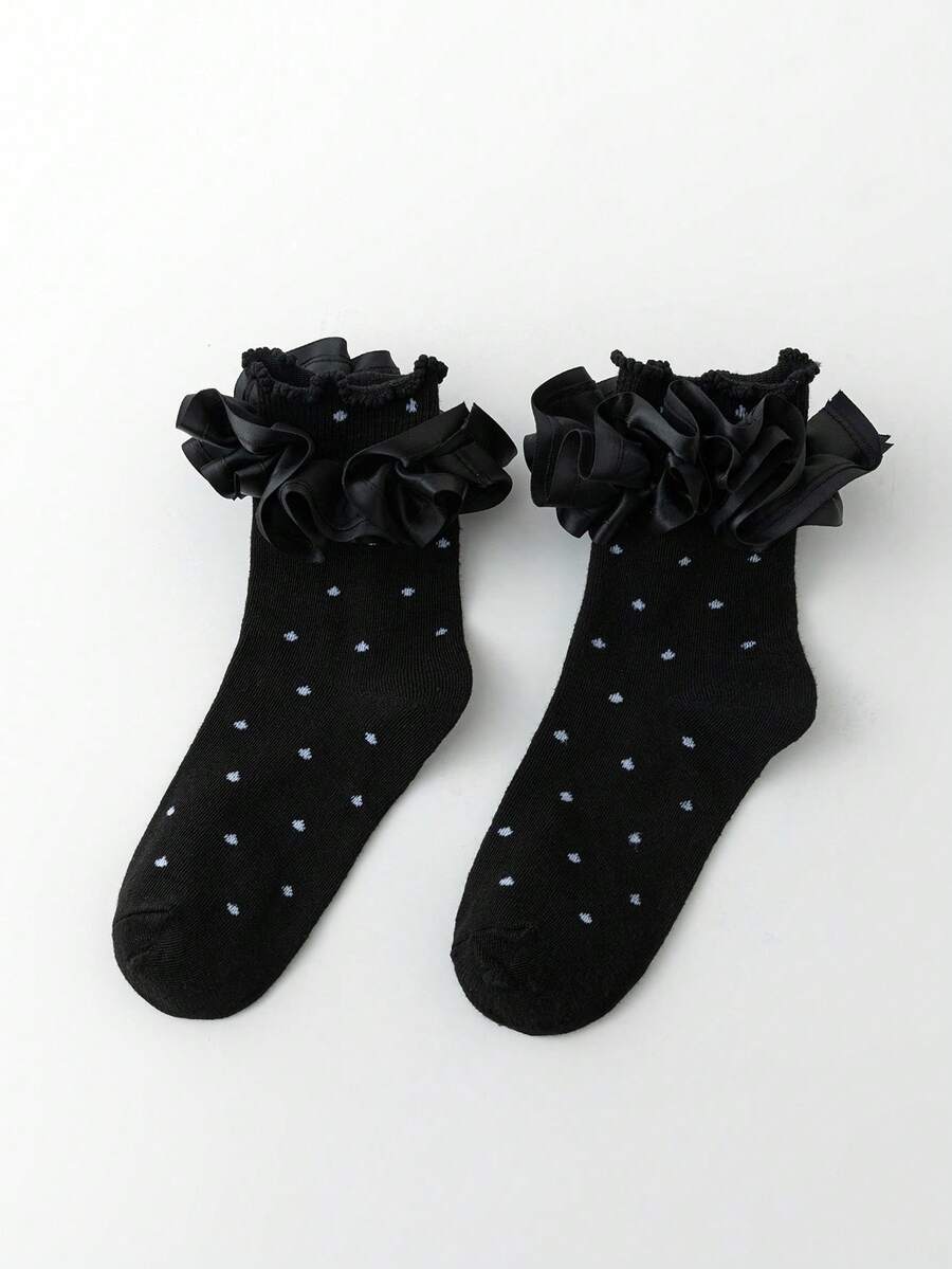 Goth Calcetines de tobillo para mujer, calcetines de media pantorrilla con ribete de Ruffle y decoración de lazo