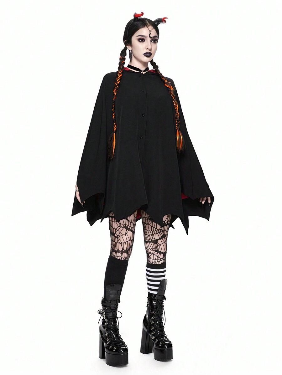 Goth Capa con capucha con bajo asimétrico y cuernos de diablo para mujer, ropa de Halloween