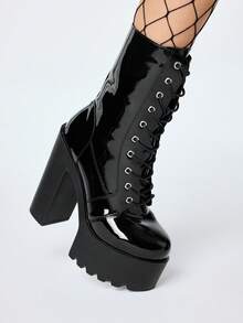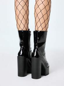 Goth Botas de cuña de moda para mujer - Botas casuales con cordones y puntera redonda para el verano, estilo punk - Cómodas botas de tobillo con cremallera lateral de fácil puesta