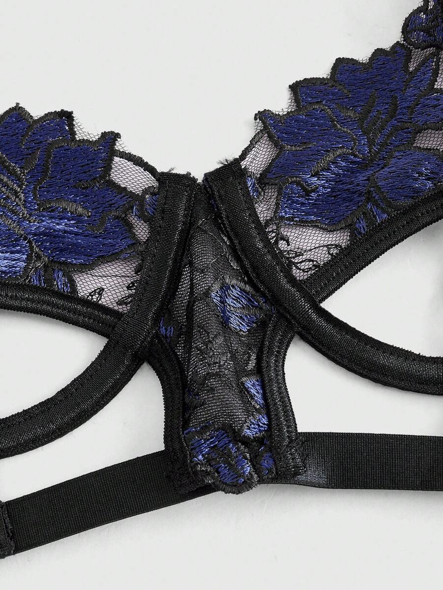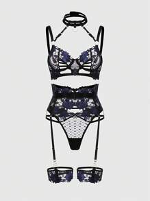 Goth Ropa interior sexy gótica de malla con bordado para mujer