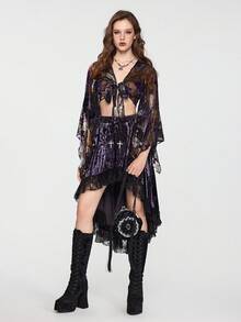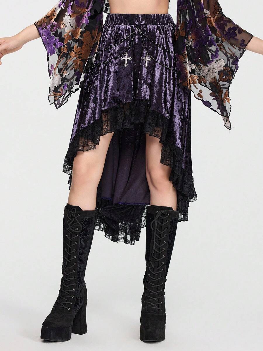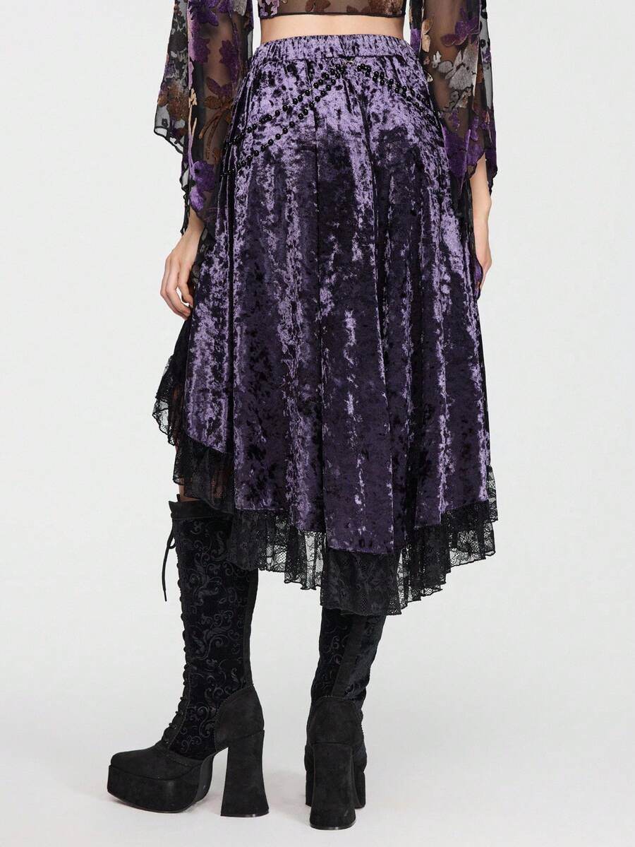 EDITION Falda con estampado todo sobre, con parche de encaje en la parte delantera y talla grande corta en la parte trasera