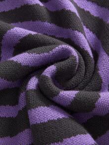 Fairycore Suéter de mujer con estampado jacquard de rayas negras y moradas con diseño misterioso de círculos
