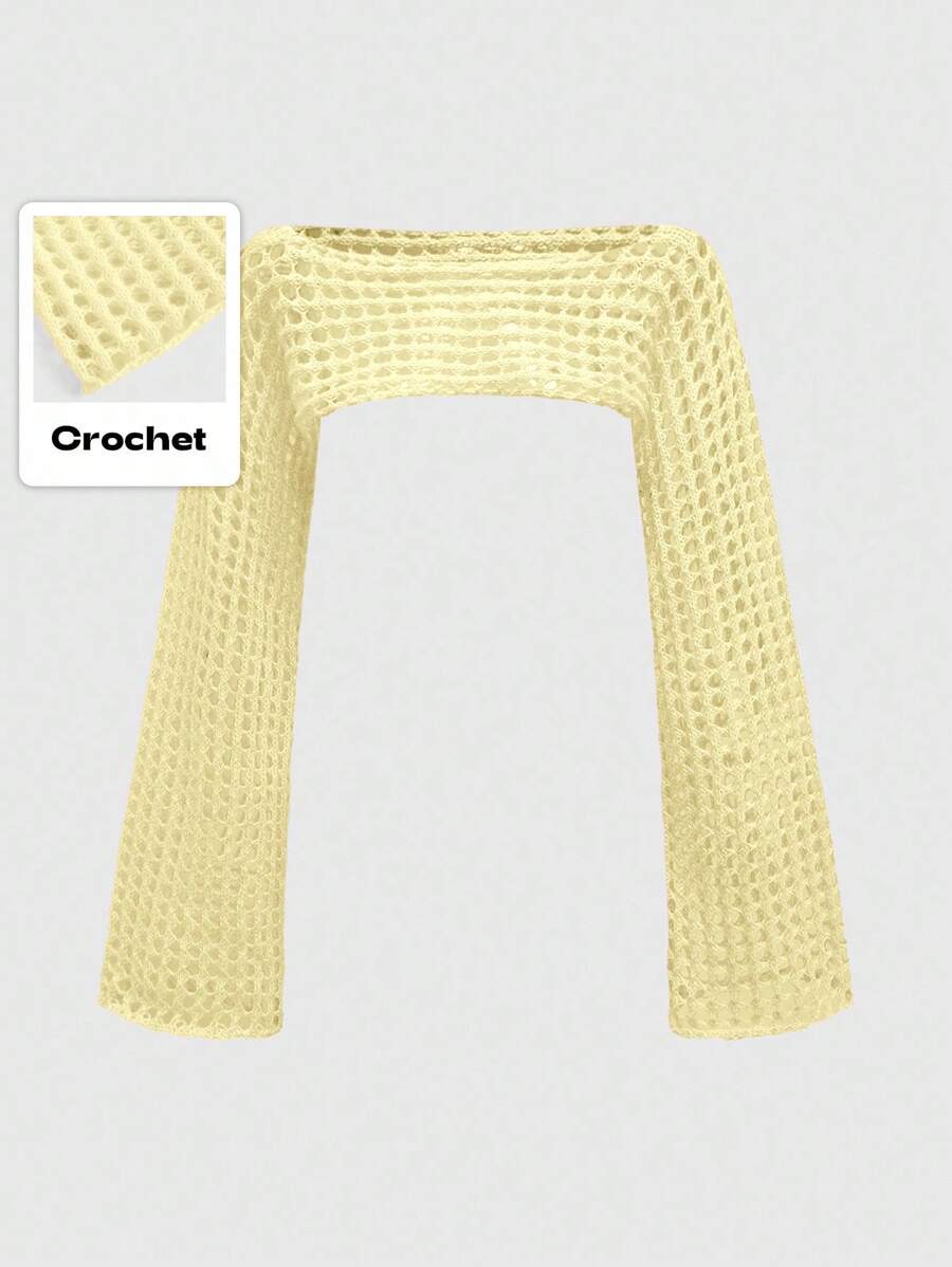 Grunge Punk Suéter ultrabreve de mujer de unicolor con efecto de ganchillo falso y tejido hueco