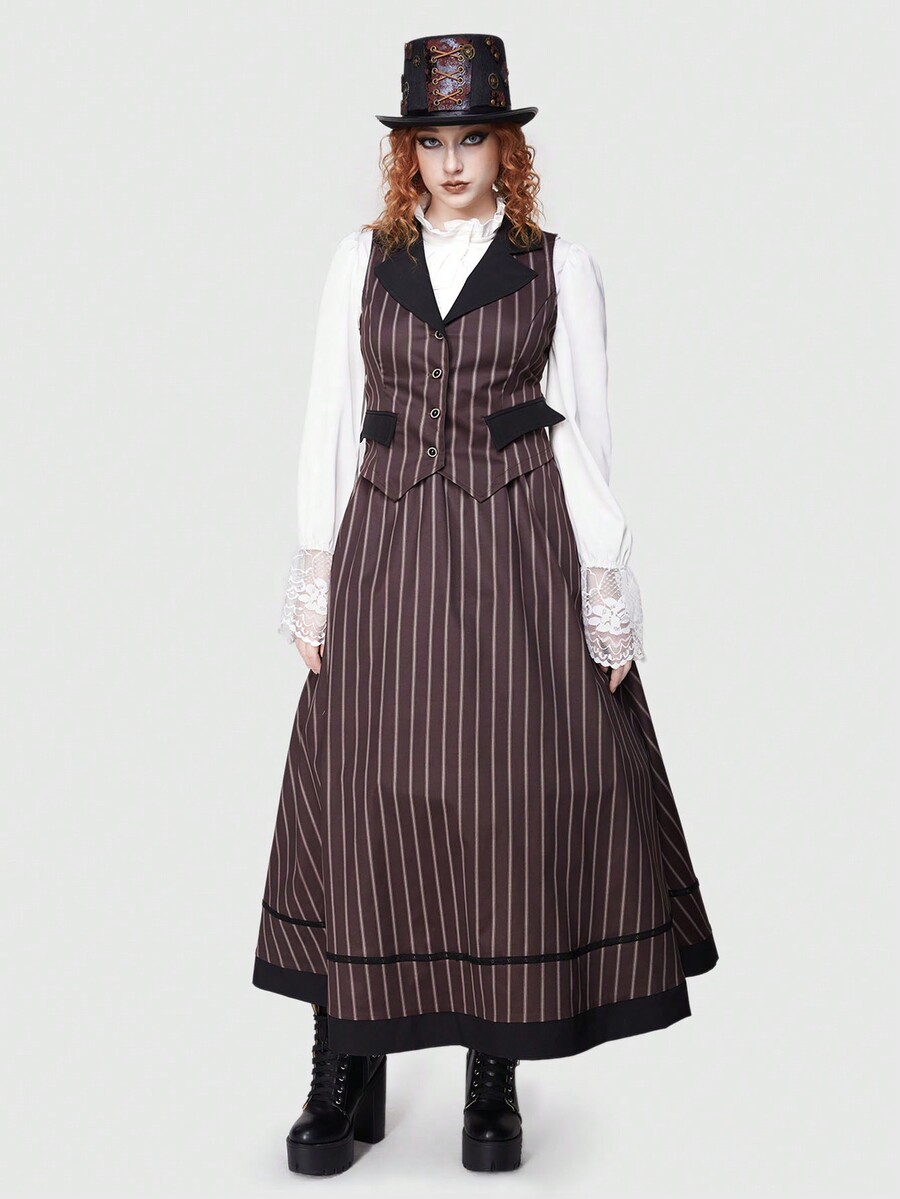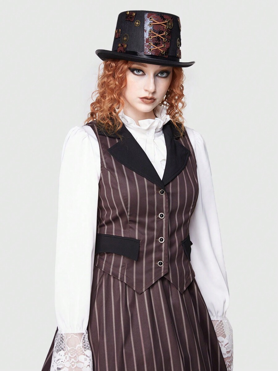 ROMWE Avant Chaleco De Traje A Rayas Para Mujer Con Solapa De Bloque De Color
