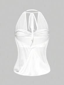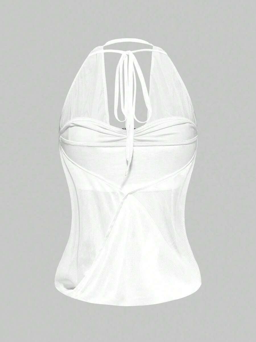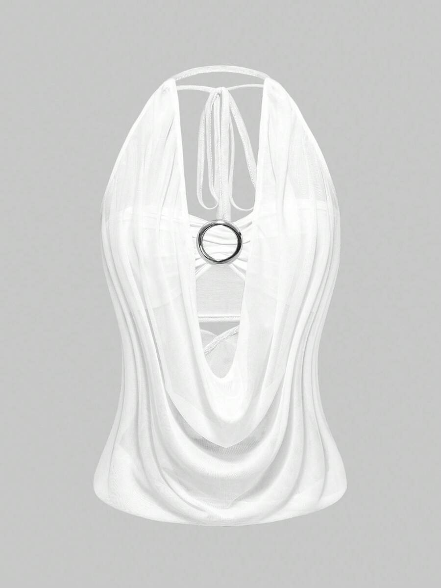 Hippie Chaleco de estilo callejero con cuello profundo drapeado y espalda descubierta (incluye camiseta interior tipo camisola) en estilo retro Y2K para mujer