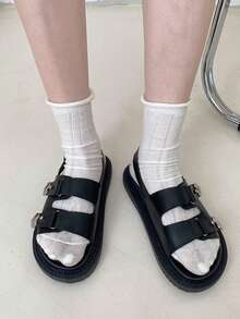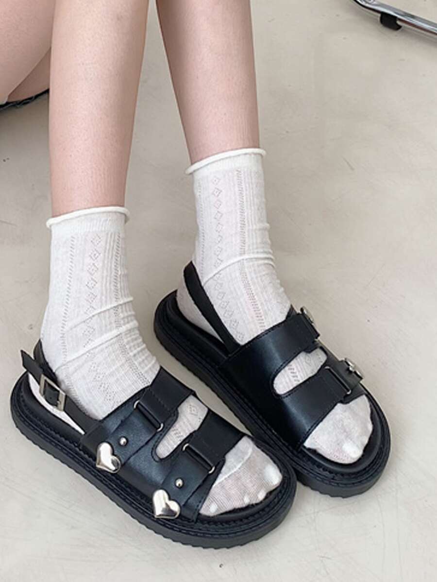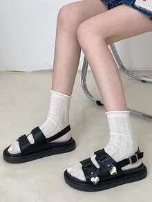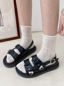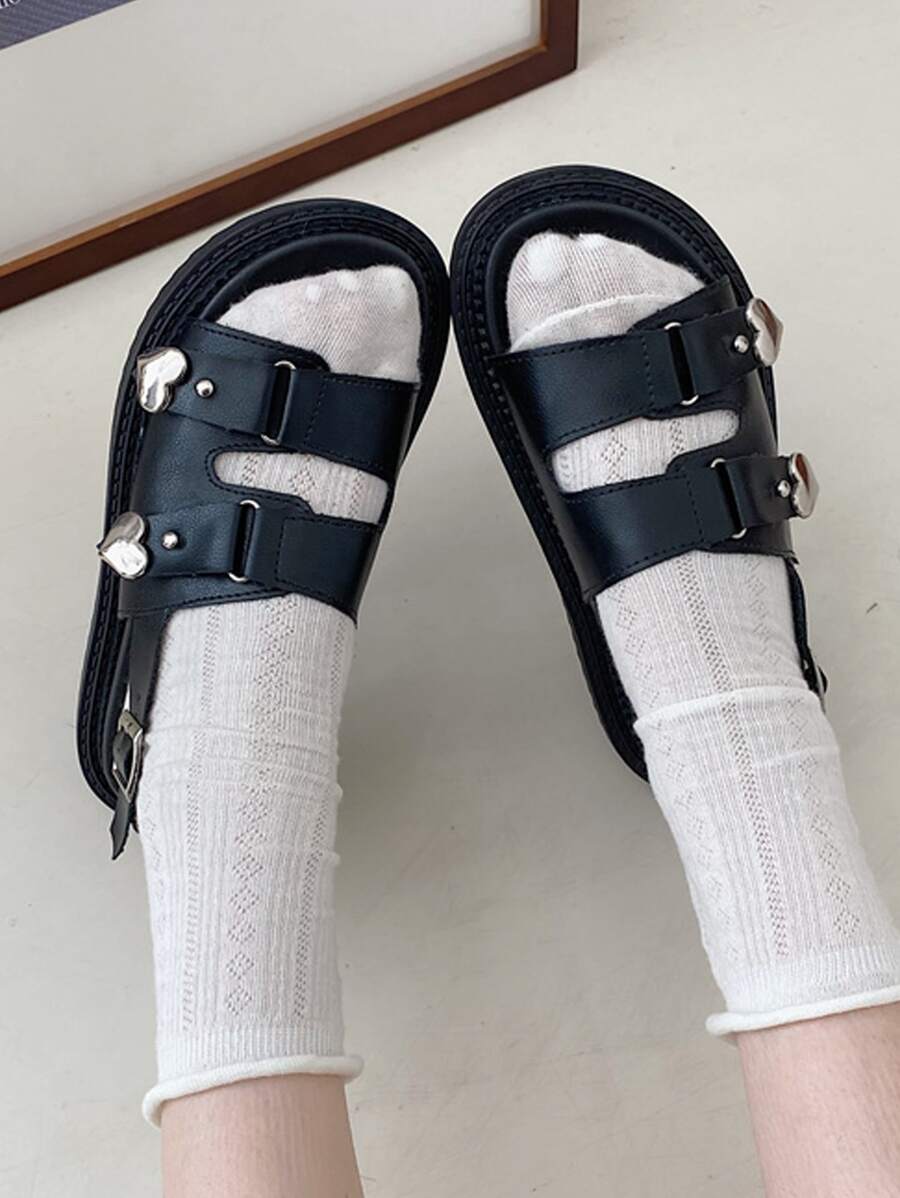 Mujer Sandalias cuña con corazón & con diseño de hebilla plataforma de talón abierto preppy negro